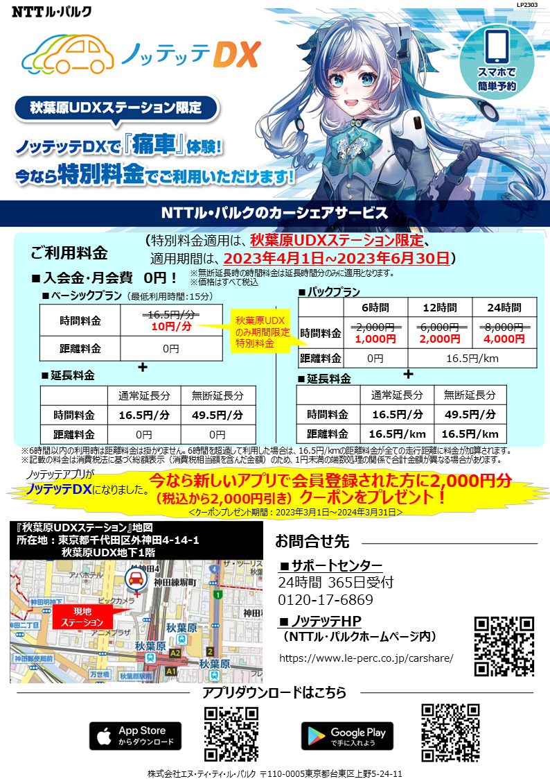 - 対象:秋葉原UDXステーション配車のノッテッテDX利用のお客様