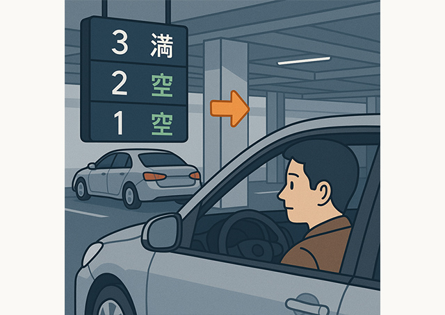 NTTルパルクの車両誘導システム「スマート満空管理システム」は、AIカメラを活用した最新の駐車場管理ソリューションです。大規模な立体・地下駐車場などで、車両検知・ナンバー認証により、各フロア・エリアの満空状況をリアルタイムで把握。利用者にはサイネージや満空表示灯で混雑情報を提供し、スムーズな駐車誘導を実現します。